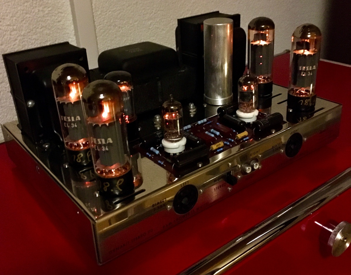Diese kleine amerikanische Röhrenendstufe wurde sowohl als Fertiggerät als auch als Bausatz angeboten. Bestückt ist die Endstufe mit 4 X EL34, 2 x 7199 und 1 x GZ34. Sie leistet so 2 x 35 Watt Sinus. Angeboten wurde der Bausatz ab Anfang der Siebzigerjahre.